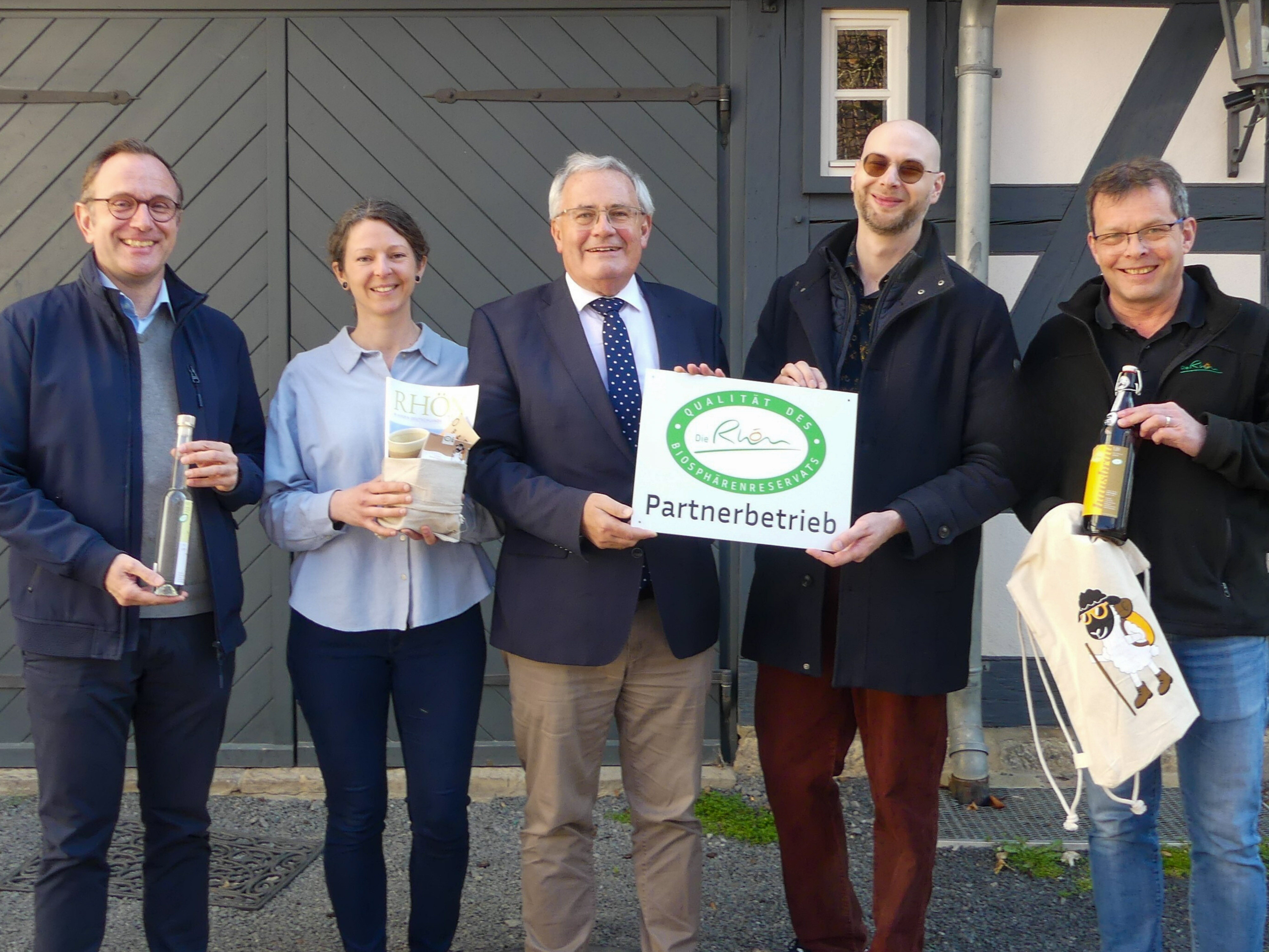 v. l. Museumsleiter Niklas Hertwig, stellvertretende Museumsleiterin Linda Wolters, Bezirkstagspräsident Stefan Funk (Verbandsvorsitzender), Johannes Metz (Geschäftsführer Rhön GmbH) und Thomas König (Marke & Produkt, Rhön GmbH).