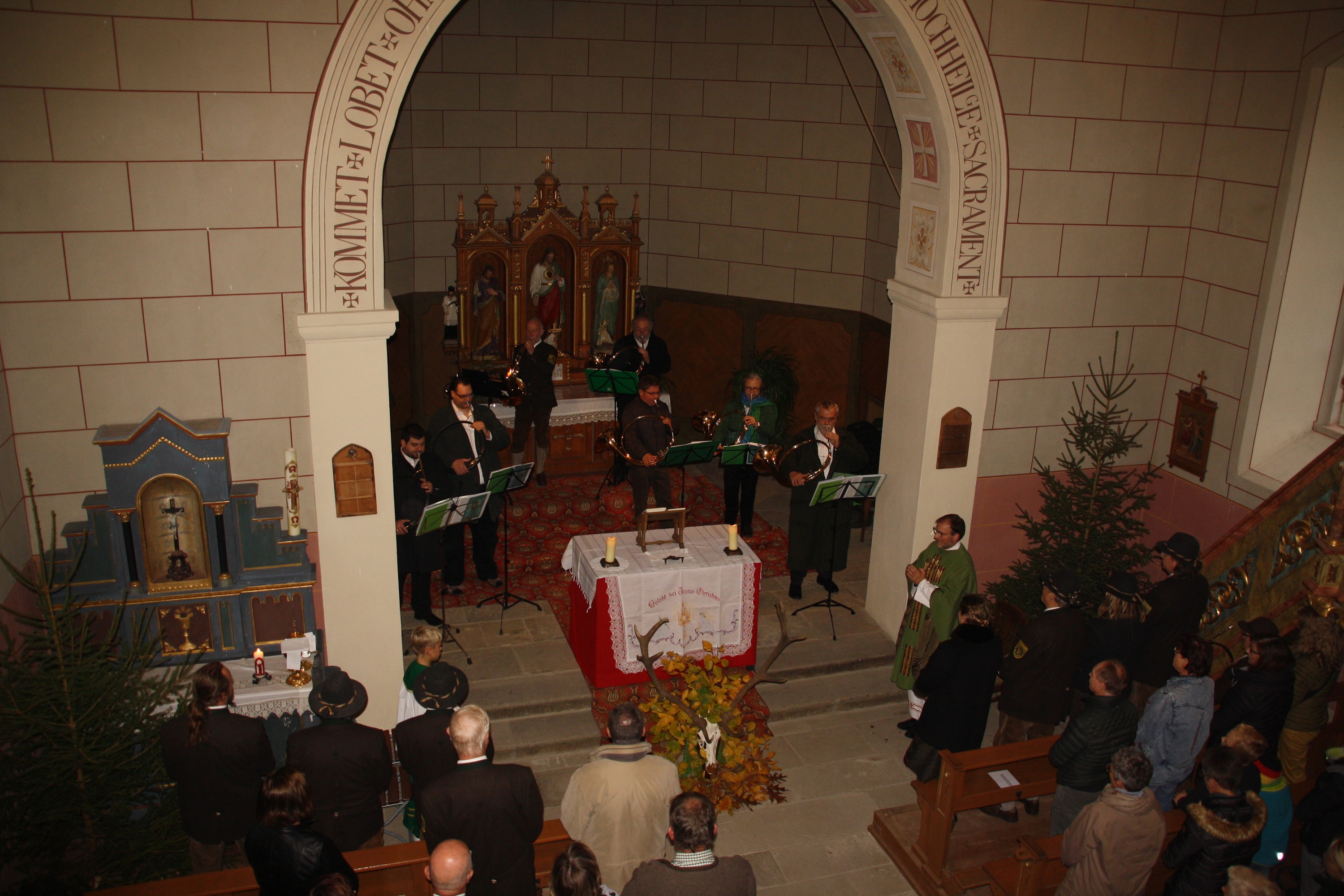 Als Höhepunkt und Abschluss sind die Besucherinnen und Besucher um 15 Uhr zur Hubertusmesse in der Museumskirche „St. Bartholomäus“ mit Pfarrvikar Paul Reder eingeladen. Sie wird von den Urselaner-Parforcehorn Bläsern aus Kronach und Mellrichstadt (Leitung: Franz Josef Wich & Roland Reußenzehn) sowie den Jagdhornbläsern der BJV-Kreisgruppe Mellrichstadt festlich gestaltet. Die Hubertusmesse gilt als Erntedankfest der Jäger und verweist auf den heiligen Hubertus von Lüttich, dem Schutzpatron der Jagd.