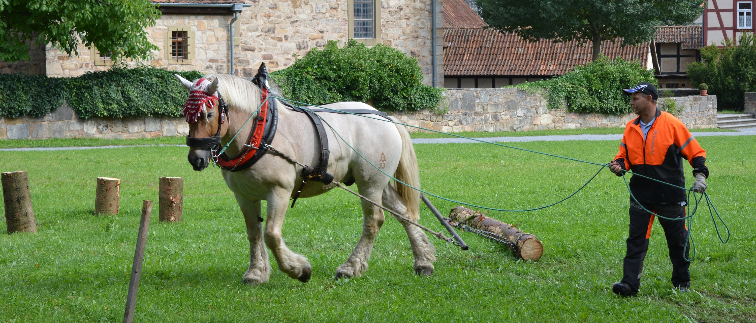 Am 11. August demonstrieren Jens Nattermann und sein 17-jähriger Thüringer Wallach "Lucas" sowie die vierjährige "Vina" ihr Können im Freilandmuseum. Auf der Festwiese werden sie von 10-15 Uhr zeigen, wie harmonisch sie zusammenwirken. Dabei ist Genauigkeit genauso gefragt wie Geschicklichkeit. Selbst eine laufende Motorsäge kann die Pferde nicht aus der Ruhe bringen, was sie den Gästen eindrucksvoll beweisen werden.