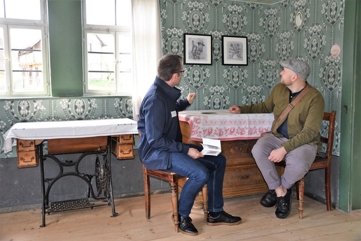 Niklas Hertwig (li), stellv. Leiter des Fränkischen Freilandmuseums Fladungen, mit dem Künstler Marco Wagner (re) aus Bischofsheim-Haselbach, Foto: Tonya Schulz
