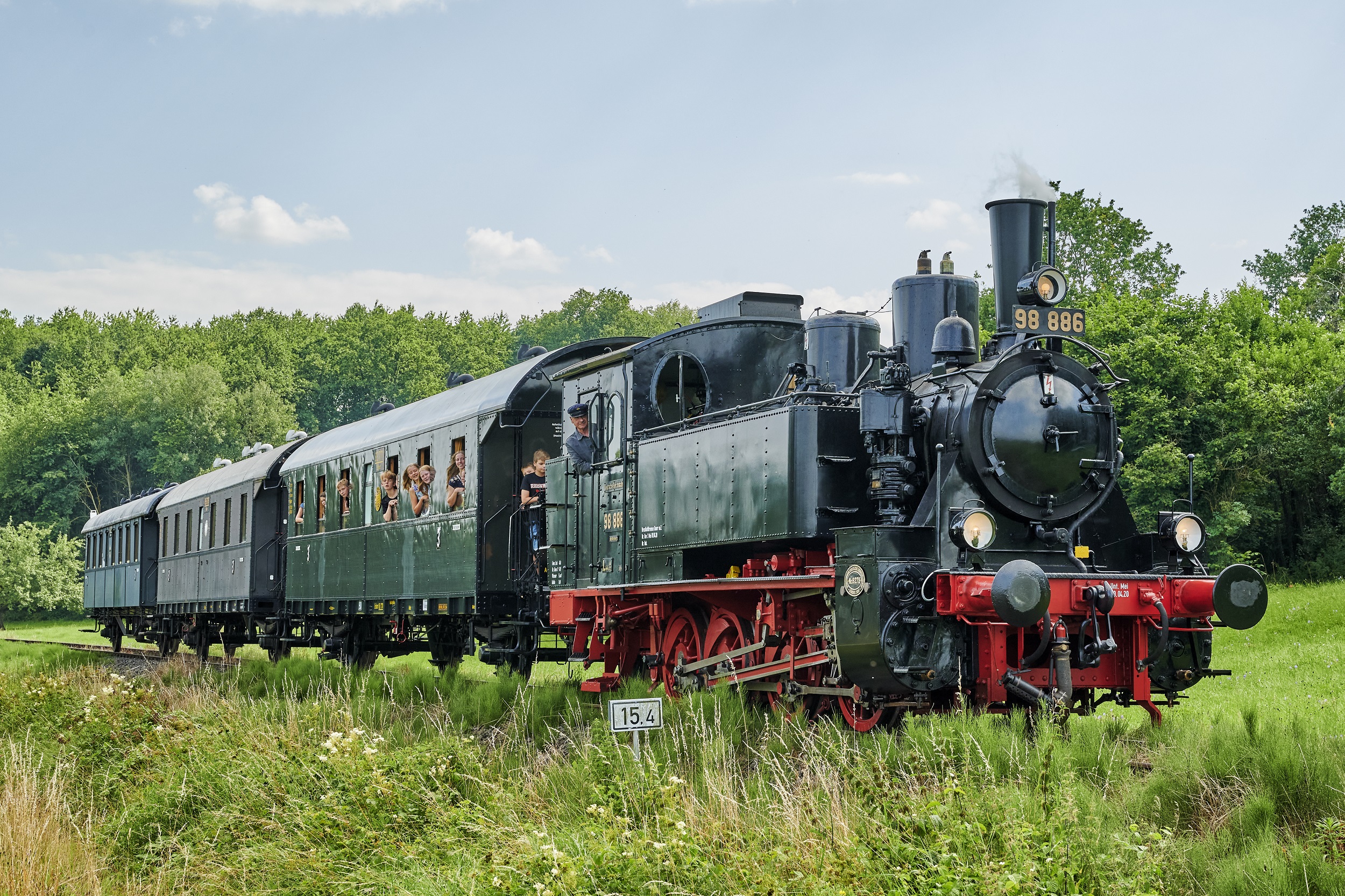 Seit der Saison 2000 ist die Dampflok 98 886 das große Zugpferd auf der Museumsbahnstrecke Fladungen - Mellrichstadt. Von Krauss & Comp. in München erbaut, zog die 46 Tonnen schwere und 450 PS starke Lok bis 1968 Personen- und Güterzüge auf verschiedenen Strecken in Bayerisch-Schwaben und Unterfranken, zuletzt auf der Strecke Bad Neustadt - Königshofen. Die Stadt Schweinfurt erwarb die Lok nach ihrer Ausmusterung und stellte sie ab 1978 als Denkmal vor ihrem Hauptbahnhof auf. 20 Jahre später konnte der Zweckverband Fränkisches Freilandmuseum Fladungen die "98 886" als Dauerleihgabe übernehmen und ließ sie im Dampflokwerk Meiningen für den erneuten Einsatz auf der Schiene aufbereiten. Als bewegliches Denkmal ist sie in die bayerische Denkmalliste eingetragen.