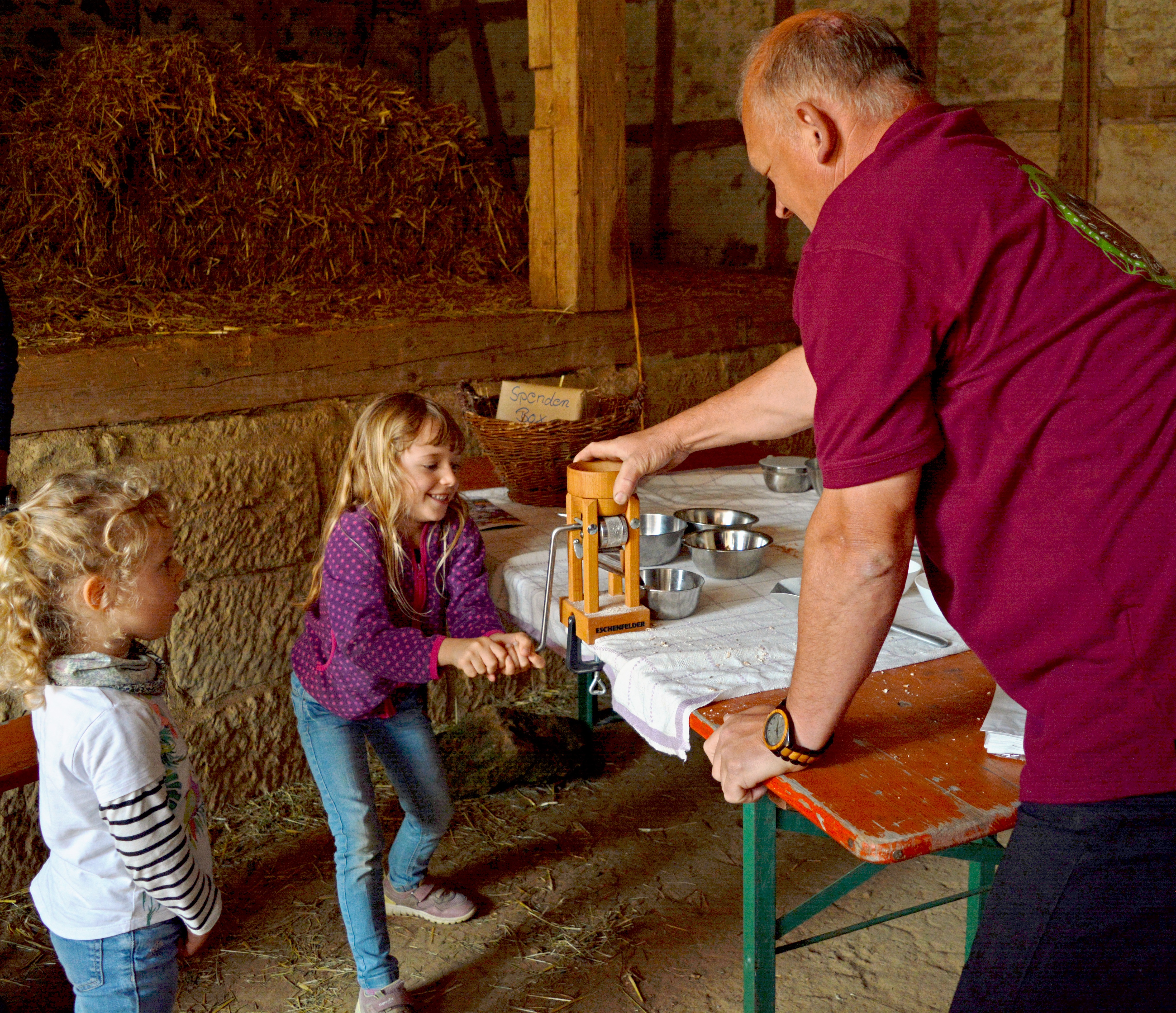 An verschiedenen Mitmachstationen erhalten Besucherinnen und Besucher spannende Einblicke in das Kulturgut Mühle und das traditionelle Müllerhandwerk. An der Flockenquetsche können Groß und Klein selbst Getreide quetschen und mit nach Hause nehmen. Kinder sind eingeladen, kleine Wasserräder aus Holz zu bauen und diese direkt am Bachlauf auszuprobieren.