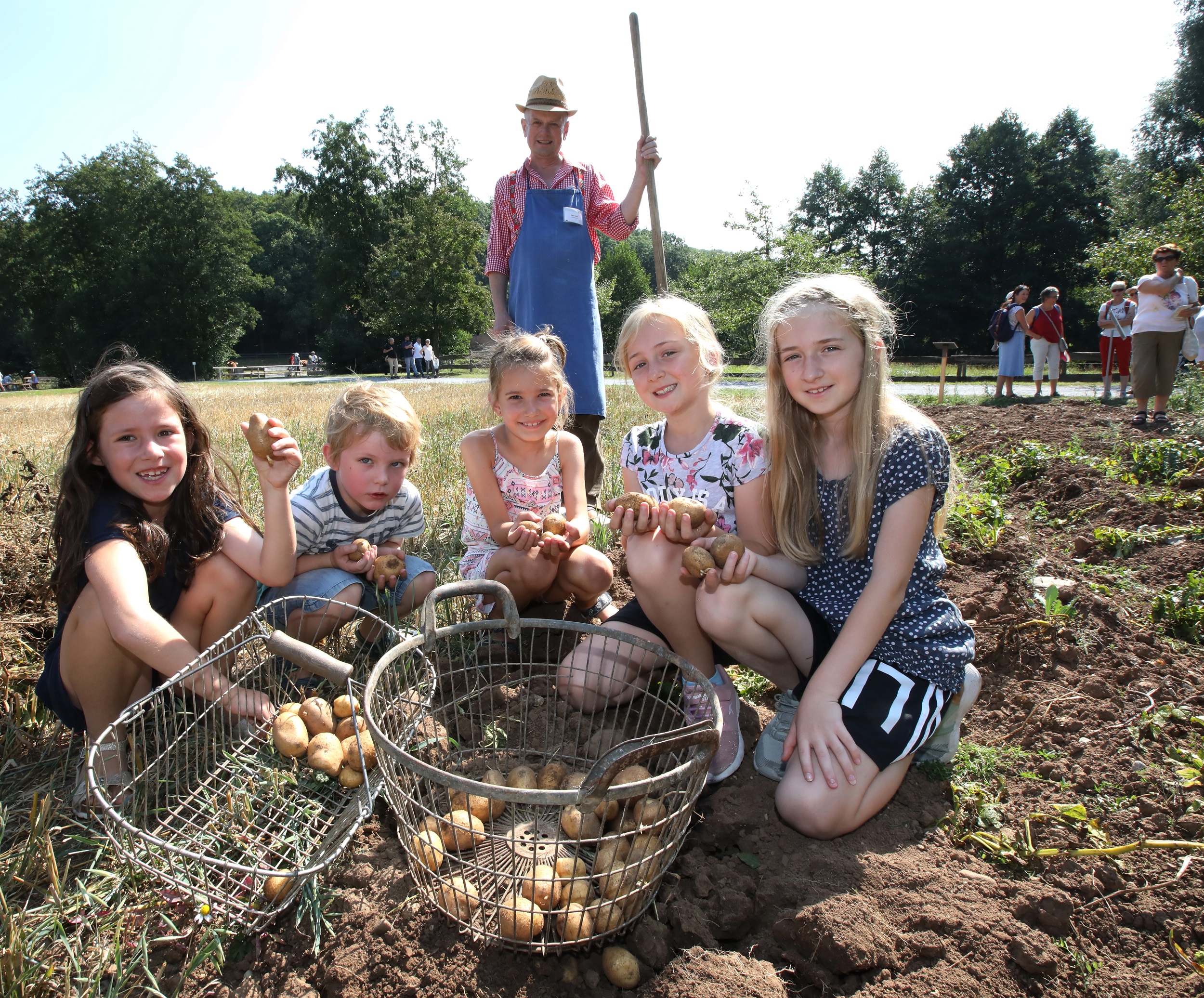 Bei guter Witterung können Kinder ab 13 Uhr die Erdäpfel vom Acker sammeln. Aus dem Kraut wird ein Kartoffelfeuer entfacht, in dem die frisch geernteten Knollen gegart und gleich probiert werden können. Wer mag, hilft außerdem an der Spindelpresse mit und lässt sich den naturtrüben Apfelsaft schmecken.
