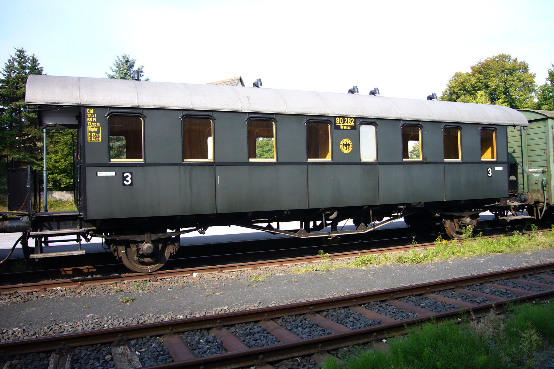 | Der Wagen wurde zu Beginn des neuen Jahrtausends aus einem Bauzugwagen restauriert. Es handelt es sich um einen leichten Nebenbahnpersonenwagen, der bei der Deutschen Reichsbahn Gesellschaft als Triebwagenbeiwagen in Dienst gestellt wurde und daher eine Außenlackierung in rot und beige erhielt. Innen wurde er, dem Lieferzustand in den 1930er Jahren entsprechend, als Wagen dritter Klasse und somit ebenfalls originalgetreu gestaltet. | |