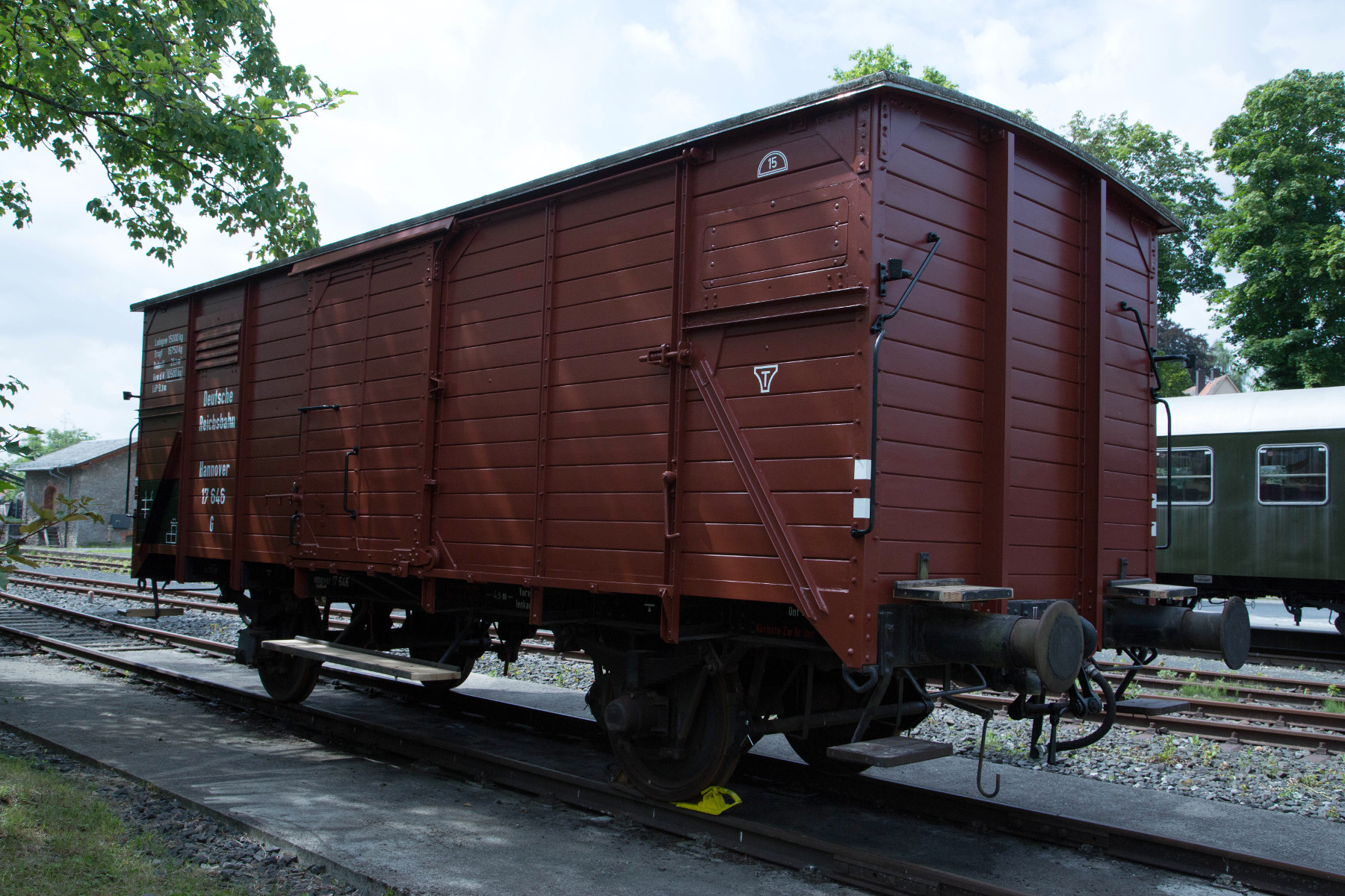 | Der Wagen wurde 2008 restauriert und entspricht von seiner Bauart her einem geschlossenen Güterwagen nach preußischem Musterblatt IIc 13. Zur Bauzeit der Wagen dieses Typs waren die Züge noch nicht mit durchgehenden Druckluftbremsen ausgestattet. Es wurden deshalb Wagen des Zuges mit Bremsern besetzt, die auf Signale des Lokführers hin die Bremsen bedienten. Unser Wagen weist ein Bremserhaus auf, das den Bremsern notdürftigen Witterungsschutz bot. Wagen dieser Bauart waren bis in die 1950er Jahre bei den deutschen Bahnen im Einsatz. Beim Rhön-Zügle dient dieser Wagen vorrangig dem Transport von Fahrrädern und Kinderwagen. Äußerlich entspricht er dem Zustand bei der Deutschen Reichsbahn Gesellschaft zu Beginn der 1930er Jahre. | |